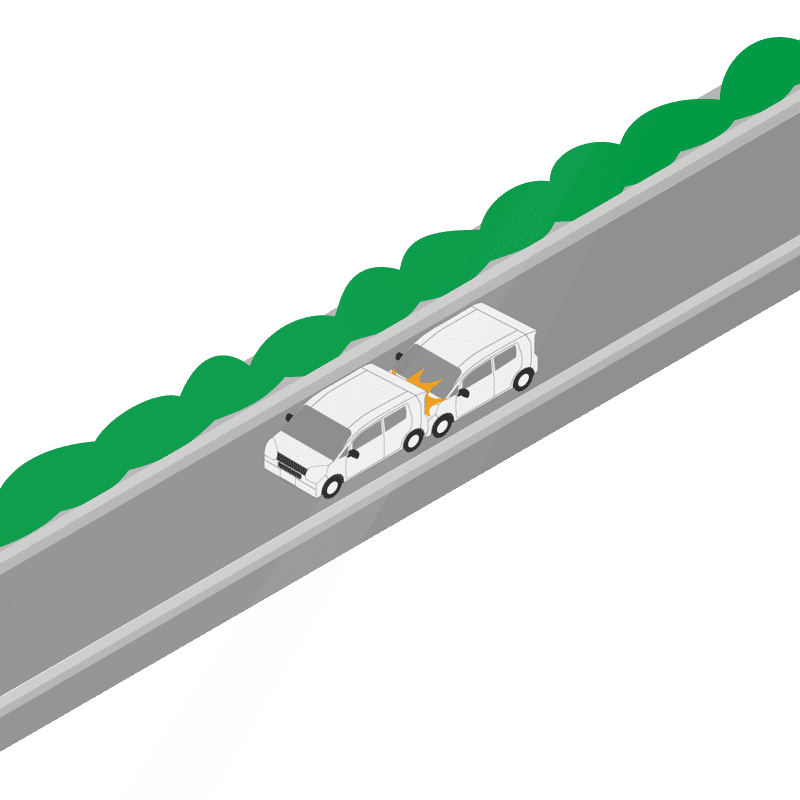 ・イラストに使用している各要素(車、背景、車、天候、信号、衝突地点など)は、代表的なイメージをイラスト化しており、色や形状等含め現実の事故の状況とは異なります。あくまで、事故のイメージとして参考までにご活用ください。