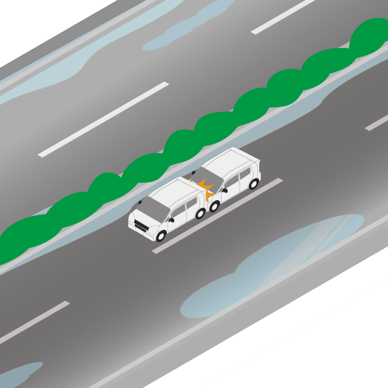 ・イラストに使用している各要素(車、背景、車、天候、信号、衝突地点など)は、代表的なイメージをイラスト化しており、色や形状等含め現実の事故の状況とは異なります。あくまで、事故のイメージとして参考までにご活用ください。