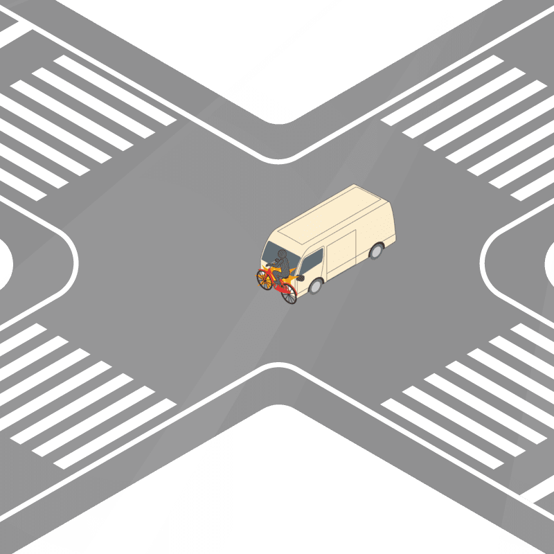 ・イラストに使用している各要素(車、背景、車、天候、信号、衝突地点など)は、代表的なイメージをイラスト化しており、色や形状等含め現実の事故の状況とは異なります。あくまで、事故のイメージとして参考までにご活用ください。