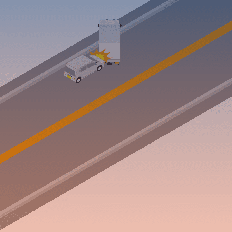 ・イラストに使用している各要素(車、背景、車、天候、信号、衝突地点など)は、代表的なイメージをイラスト化しており、色や形状等含め現実の事故の状況とは異なります。あくまで、事故のイメージとして参考までにご活用ください。