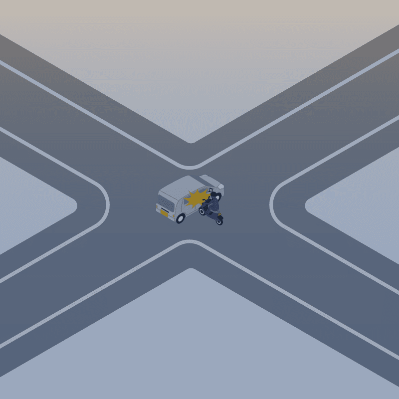 ・イラストに使用している各要素(車、背景、車、天候、信号、衝突地点など)は、代表的なイメージをイラスト化しており、色や形状等含め現実の事故の状況とは異なります。あくまで、事故のイメージとして参考までにご活用ください。