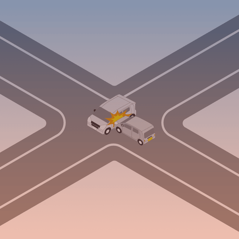 ・イラストに使用している各要素(車、背景、車、天候、信号、衝突地点など)は、代表的なイメージをイラスト化しており、色や形状等含め現実の事故の状況とは異なります。あくまで、事故のイメージとして参考までにご活用ください。