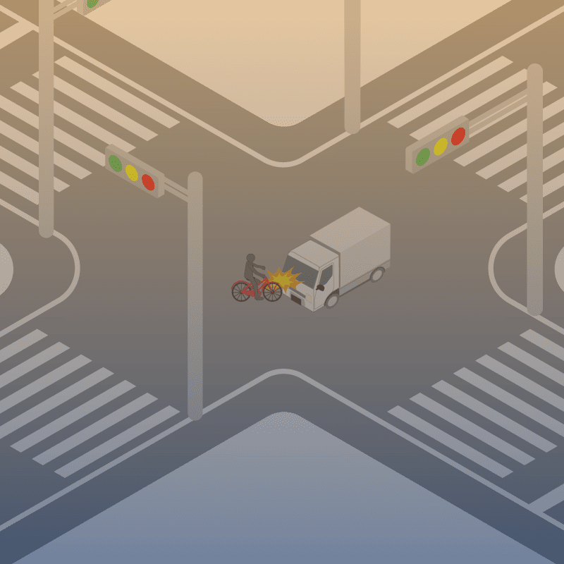 ・イラストに使用している各要素(車、背景、車、天候、信号、衝突地点など)は、代表的なイメージをイラスト化しており、色や形状等含め現実の事故の状況とは異なります。あくまで、事故のイメージとして参考までにご活用ください。