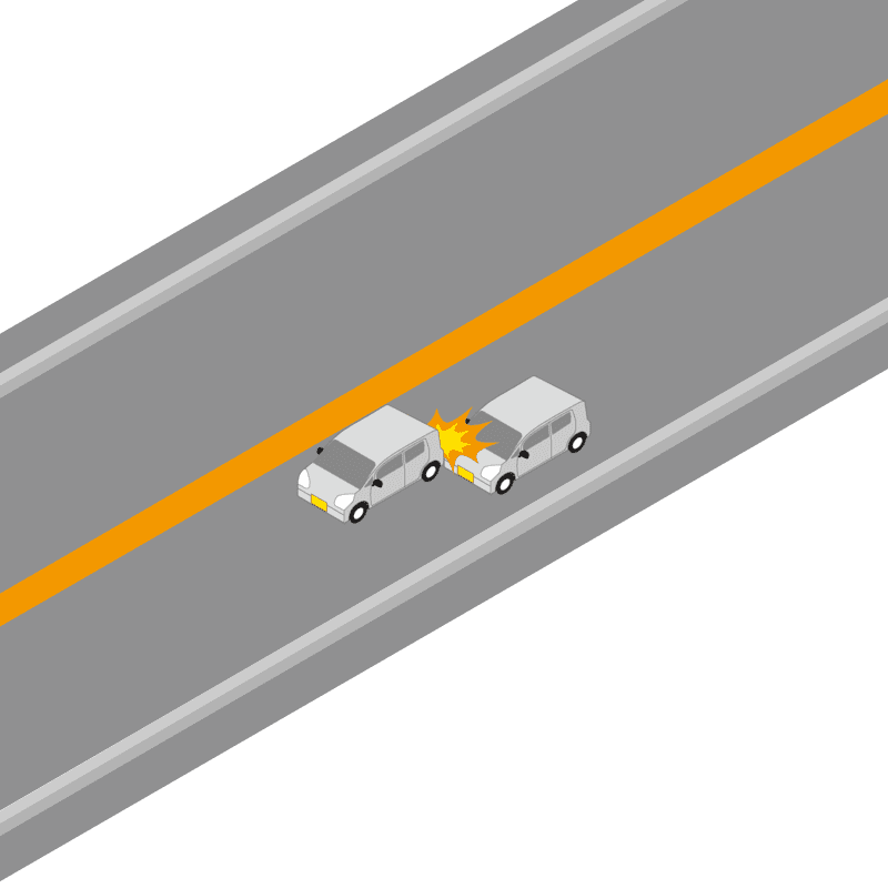 ・イラストに使用している各要素(車、背景、車、天候、信号、衝突地点など)は、代表的なイメージをイラスト化しており、色や形状等含め現実の事故の状況とは異なります。あくまで、事故のイメージとして参考までにご活用ください。