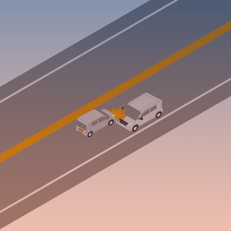 ・イラストに使用している各要素(車、背景、車、天候、信号、衝突地点など)は、代表的なイメージをイラスト化しており、色や形状等含め現実の事故の状況とは異なります。あくまで、事故のイメージとして参考までにご活用ください。