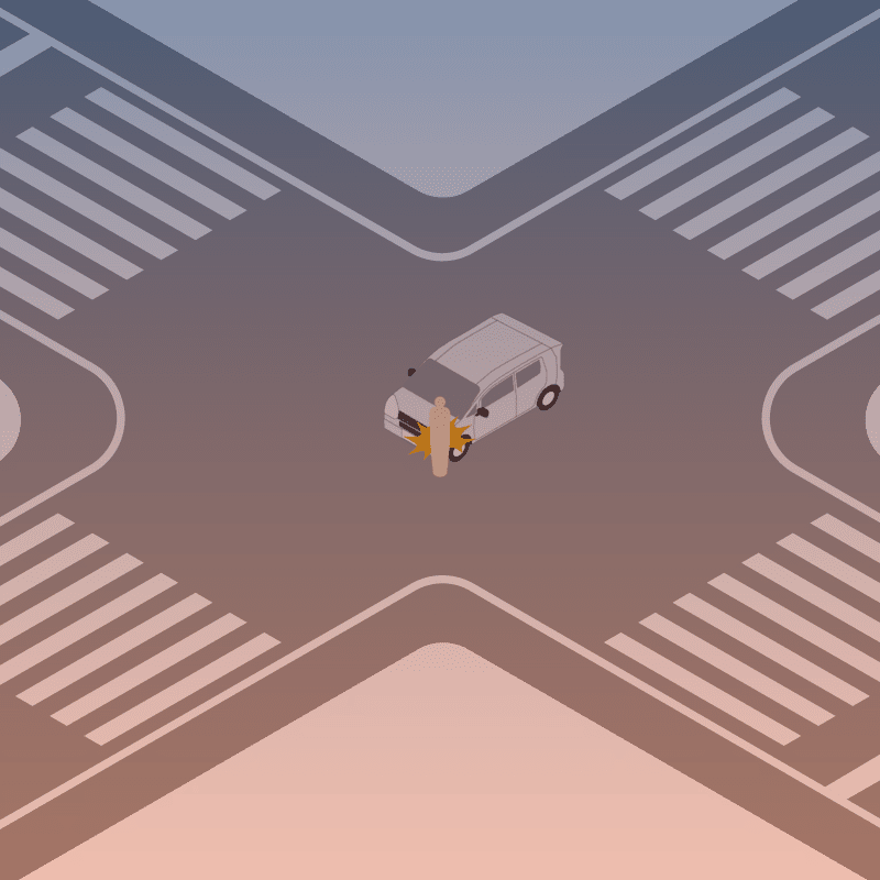 ・イラストに使用している各要素(車、背景、車、天候、信号、衝突地点など)は、代表的なイメージをイラスト化しており、色や形状等含め現実の事故の状況とは異なります。あくまで、事故のイメージとして参考までにご活用ください。