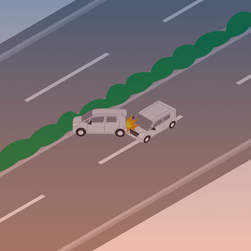 ・イラストに使用している各要素(車、背景、車、天候、信号、衝突地点など)は、代表的なイメージをイラスト化しており、色や形状等含め現実の事故の状況とは異なります。あくまで、事故のイメージとして参考までにご活用ください。