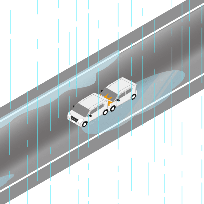 ・イラストに使用している各要素(車、背景、車、天候、信号、衝突地点など)は、代表的なイメージをイラスト化しており、色や形状等含め現実の事故の状況とは異なります。あくまで、事故のイメージとして参考までにご活用ください。