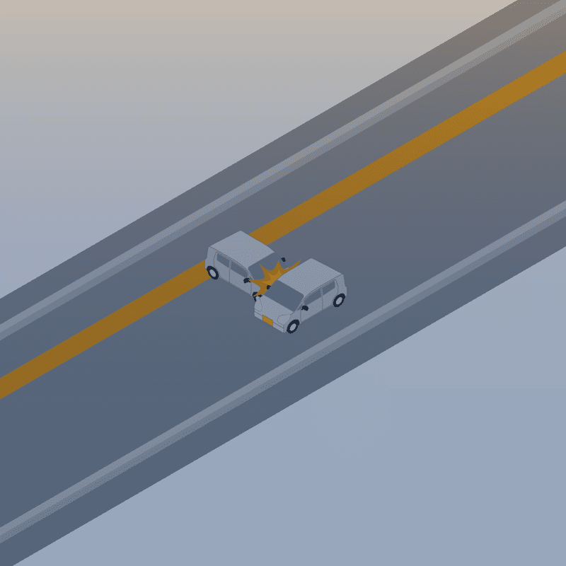 ・イラストに使用している各要素(車、背景、車、天候、信号、衝突地点など)は、代表的なイメージをイラスト化しており、色や形状等含め現実の事故の状況とは異なります。あくまで、事故のイメージとして参考までにご活用ください。