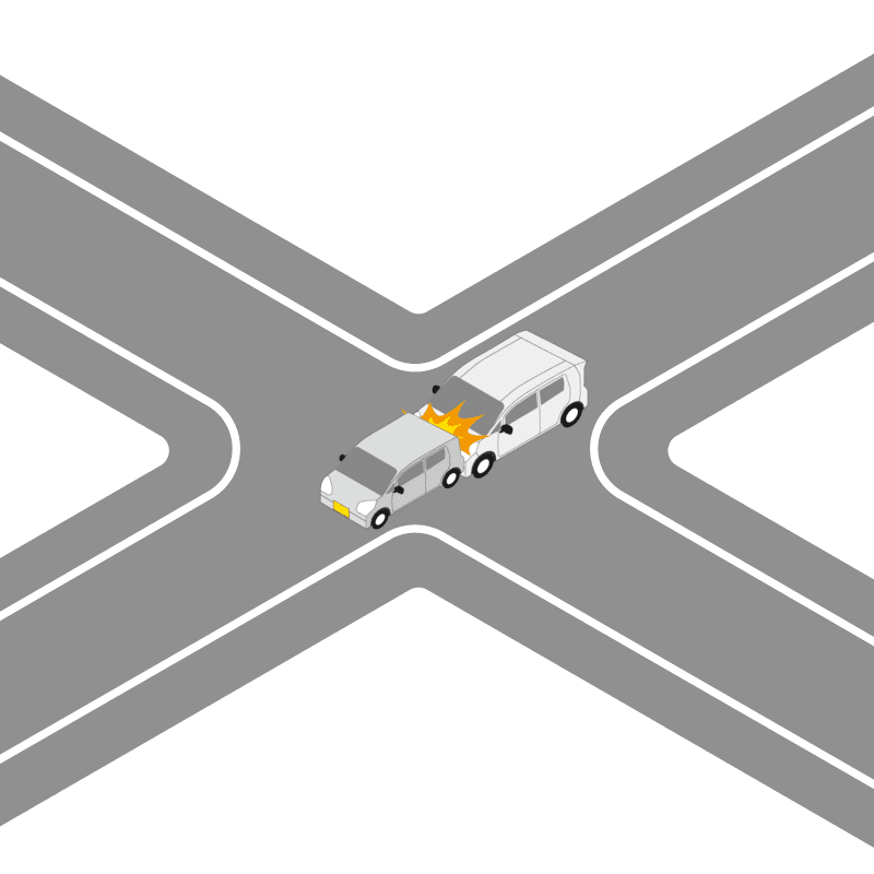 ・イラストに使用している各要素(車、背景、車、天候、信号、衝突地点など)は、代表的なイメージをイラスト化しており、色や形状等含め現実の事故の状況とは異なります。あくまで、事故のイメージとして参考までにご活用ください。