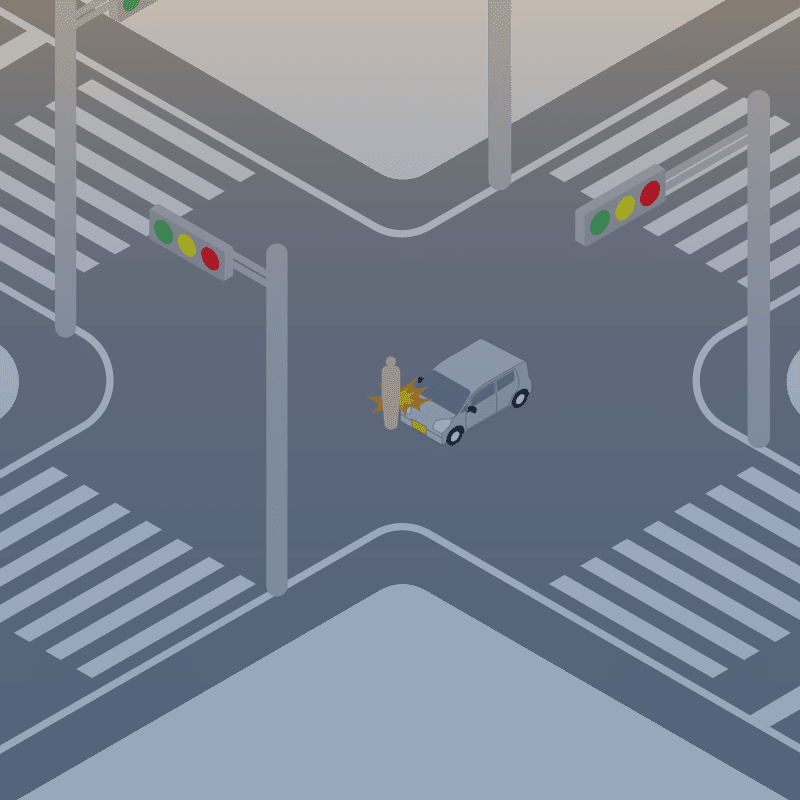 ・イラストに使用している各要素(車、背景、車、天候、信号、衝突地点など)は、代表的なイメージをイラスト化しており、色や形状等含め現実の事故の状況とは異なります。あくまで、事故のイメージとして参考までにご活用ください。