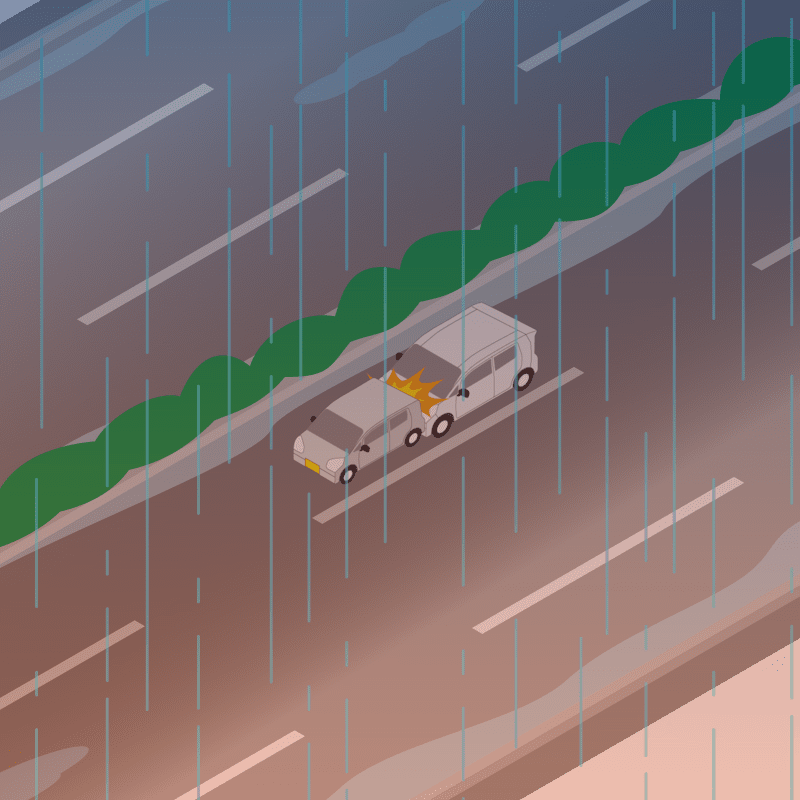 ・イラストに使用している各要素(車、背景、車、天候、信号、衝突地点など)は、代表的なイメージをイラスト化しており、色や形状等含め現実の事故の状況とは異なります。あくまで、事故のイメージとして参考までにご活用ください。
