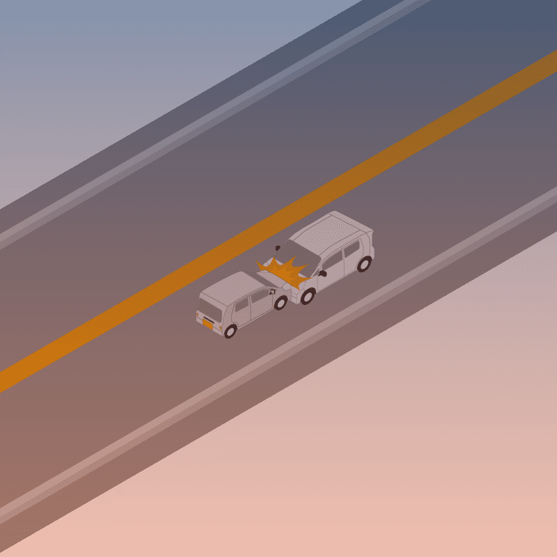 ・イラストに使用している各要素(車、背景、車、天候、信号、衝突地点など)は、代表的なイメージをイラスト化しており、色や形状等含め現実の事故の状況とは異なります。あくまで、事故のイメージとして参考までにご活用ください。