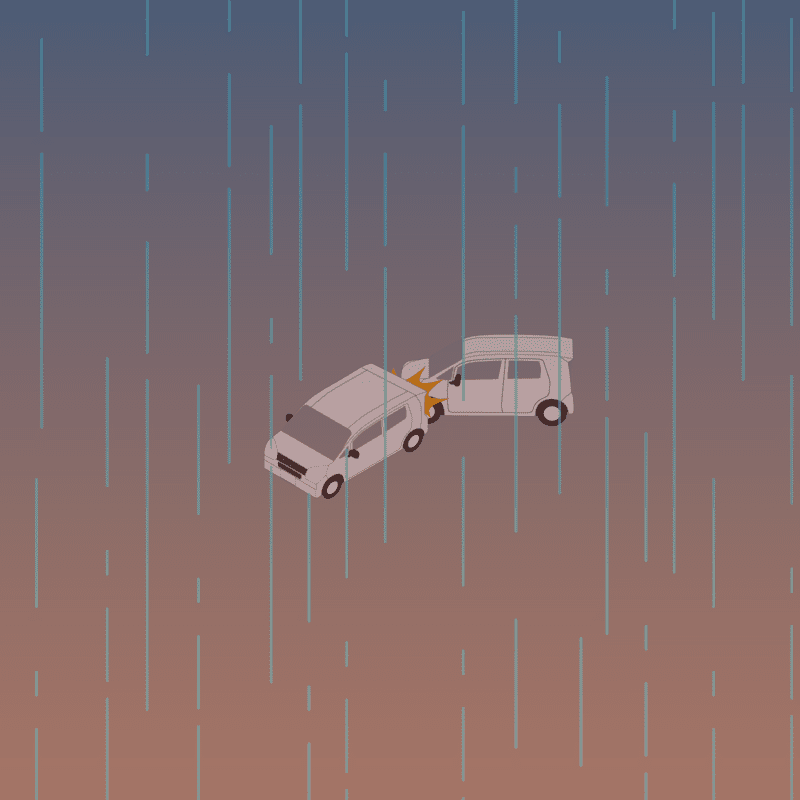 ・イラストに使用している各要素(車、背景、車、天候、信号、衝突地点など)は、代表的なイメージをイラスト化しており、色や形状等含め現実の事故の状況とは異なります。あくまで、事故のイメージとして参考までにご活用ください。