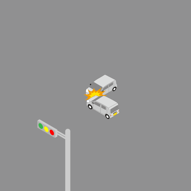・イラストに使用している各要素(車、背景、車、天候、信号、衝突地点など)は、代表的なイメージをイラスト化しており、色や形状等含め現実の事故の状況とは異なります。あくまで、事故のイメージとして参考までにご活用ください。