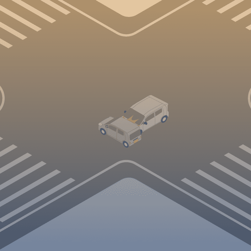 ・イラストに使用している各要素(車、背景、車、天候、信号、衝突地点など)は、代表的なイメージをイラスト化しており、色や形状等含め現実の事故の状況とは異なります。あくまで、事故のイメージとして参考までにご活用ください。