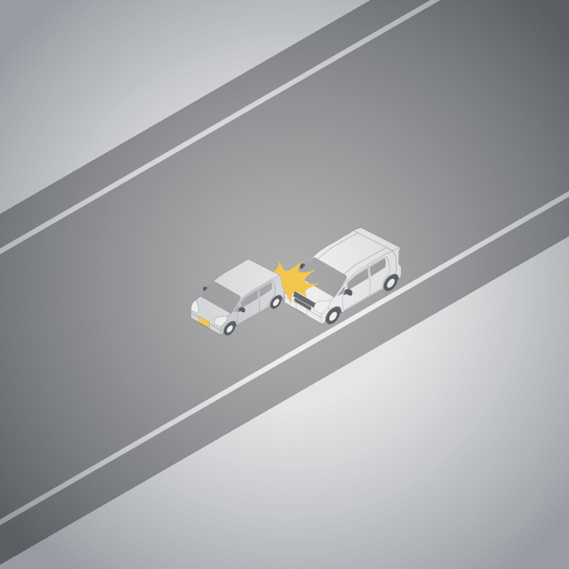 ・イラストに使用している各要素(車、背景、車、天候、信号、衝突地点など)は、代表的なイメージをイラスト化しており、色や形状等含め現実の事故の状況とは異なります。あくまで、事故のイメージとして参考までにご活用ください。