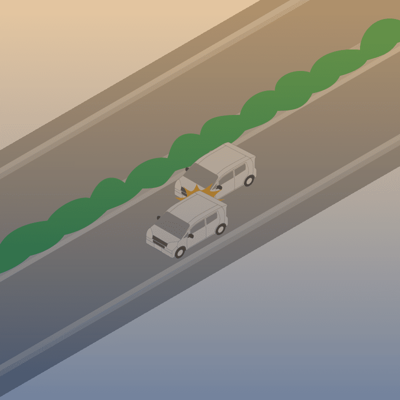 ・イラストに使用している各要素(車、背景、車、天候、信号、衝突地点など)は、代表的なイメージをイラスト化しており、色や形状等含め現実の事故の状況とは異なります。あくまで、事故のイメージとして参考までにご活用ください。