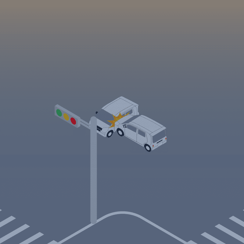 ・イラストに使用している各要素(車、背景、車、天候、信号、衝突地点など)は、代表的なイメージをイラスト化しており、色や形状等含め現実の事故の状況とは異なります。あくまで、事故のイメージとして参考までにご活用ください。