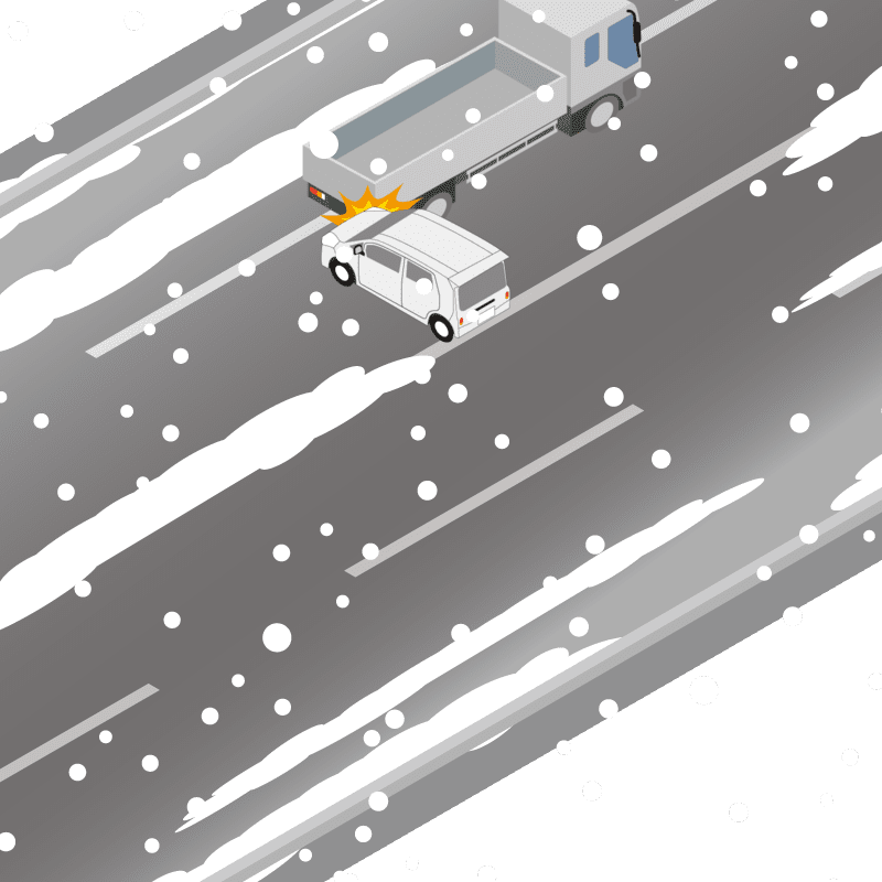 ・イラストに使用している各要素(車、背景、車、天候、信号、衝突地点など)は、代表的なイメージをイラスト化しており、色や形状等含め現実の事故の状況とは異なります。あくまで、事故のイメージとして参考までにご活用ください。