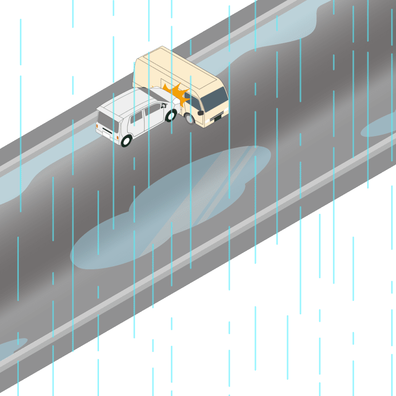 ・イラストに使用している各要素(車、背景、車、天候、信号、衝突地点など)は、代表的なイメージをイラスト化しており、色や形状等含め現実の事故の状況とは異なります。あくまで、事故のイメージとして参考までにご活用ください。