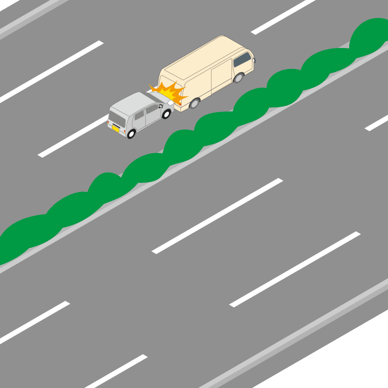 ・イラストに使用している各要素(車、背景、車、天候、信号、衝突地点など)は、代表的なイメージをイラスト化しており、色や形状等含め現実の事故の状況とは異なります。あくまで、事故のイメージとして参考までにご活用ください。
