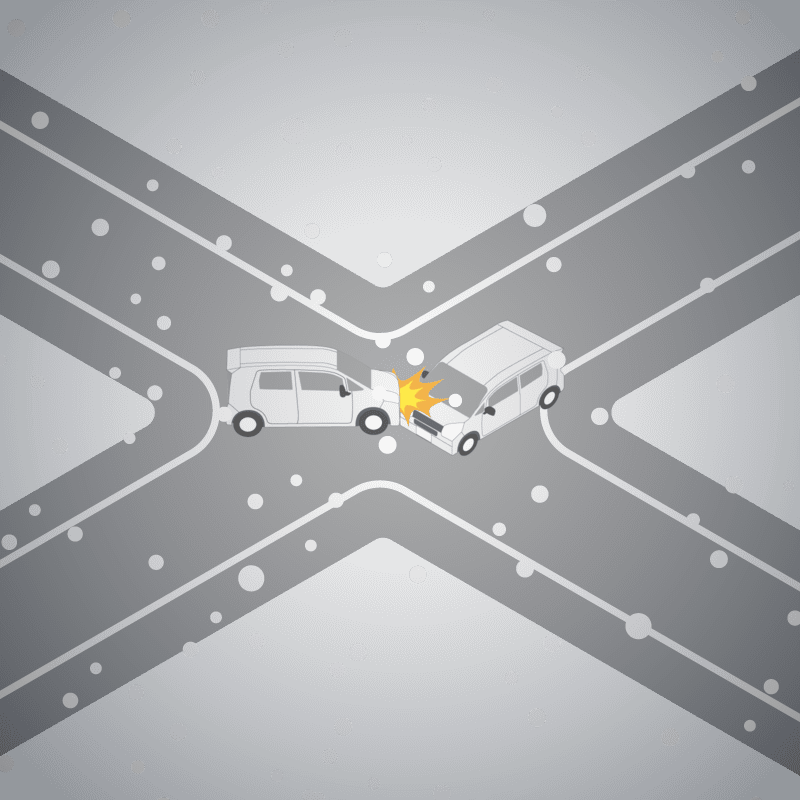 ・イラストに使用している各要素(車、背景、車、天候、信号、衝突地点など)は、代表的なイメージをイラスト化しており、色や形状等含め現実の事故の状況とは異なります。あくまで、事故のイメージとして参考までにご活用ください。