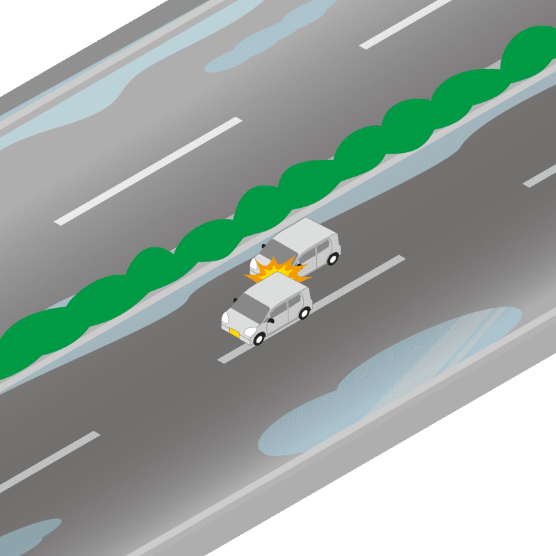 ・イラストに使用している各要素(車、背景、車、天候、信号、衝突地点など)は、代表的なイメージをイラスト化しており、色や形状等含め現実の事故の状況とは異なります。あくまで、事故のイメージとして参考までにご活用ください。