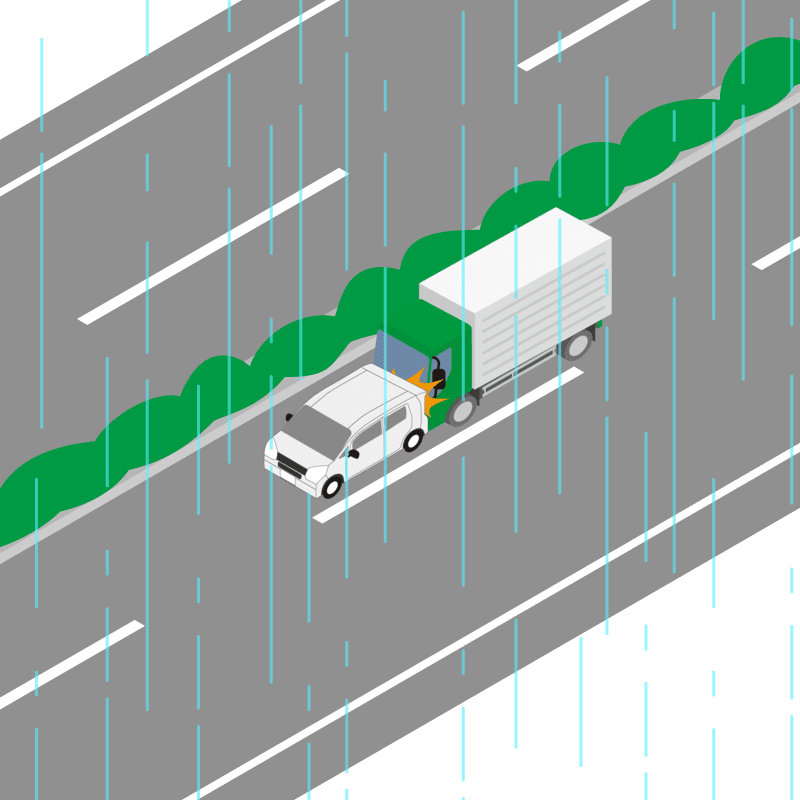 ・イラストに使用している各要素(車、背景、車、天候、信号、衝突地点など)は、代表的なイメージをイラスト化しており、色や形状等含め現実の事故の状況とは異なります。あくまで、事故のイメージとして参考までにご活用ください。