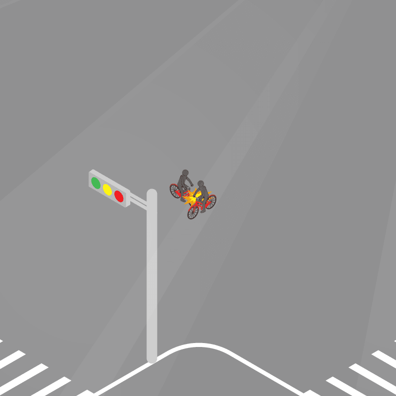 ・イラストに使用している各要素(車、背景、車、天候、信号、衝突地点など)は、代表的なイメージをイラスト化しており、色や形状等含め現実の事故の状況とは異なります。あくまで、事故のイメージとして参考までにご活用ください。