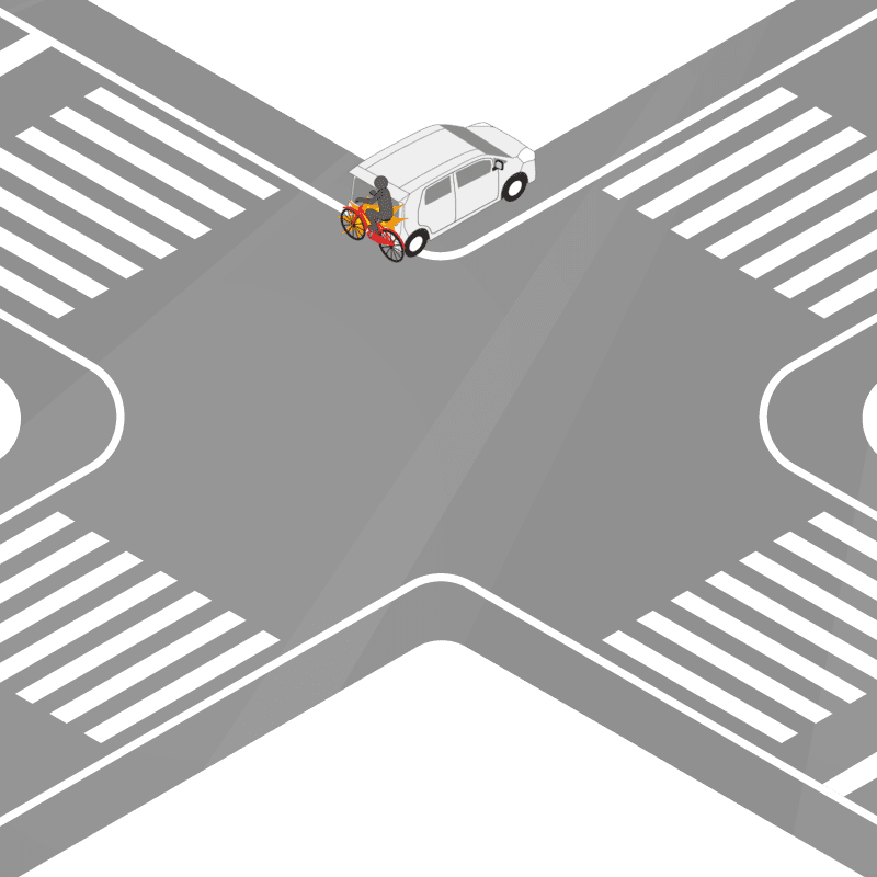 ・イラストに使用している各要素(車、背景、車、天候、信号、衝突地点など)は、代表的なイメージをイラスト化しており、色や形状等含め現実の事故の状況とは異なります。あくまで、事故のイメージとして参考までにご活用ください。