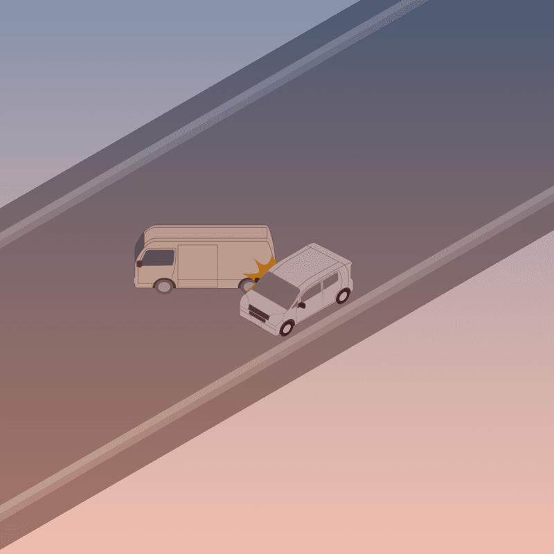 ・イラストに使用している各要素(車、背景、車、天候、信号、衝突地点など)は、代表的なイメージをイラスト化しており、色や形状等含め現実の事故の状況とは異なります。あくまで、事故のイメージとして参考までにご活用ください。