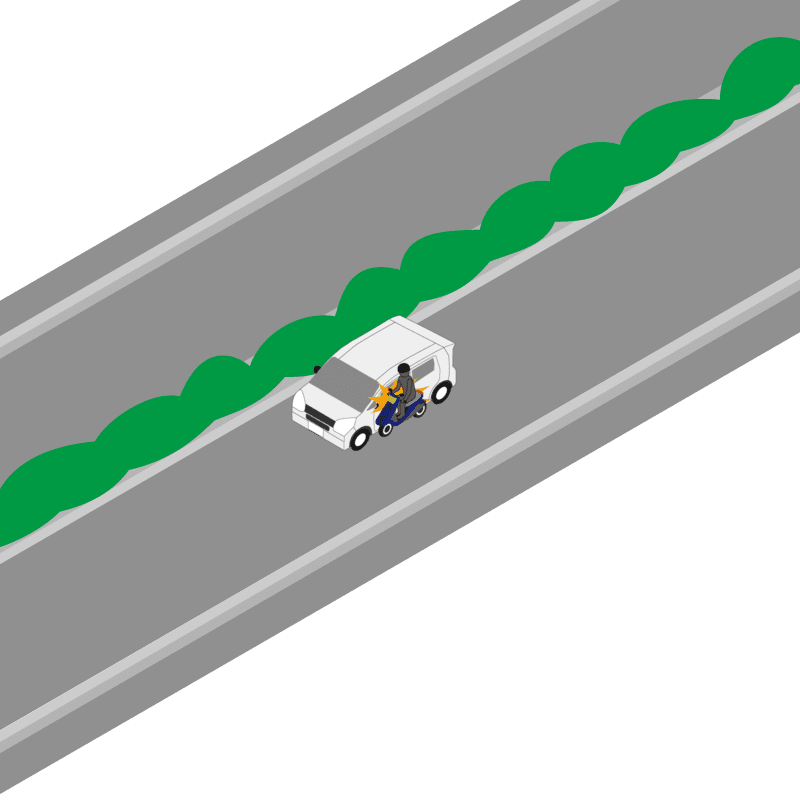 ・イラストに使用している各要素(車、背景、車、天候、信号、衝突地点など)は、代表的なイメージをイラスト化しており、色や形状等含め現実の事故の状況とは異なります。あくまで、事故のイメージとして参考までにご活用ください。