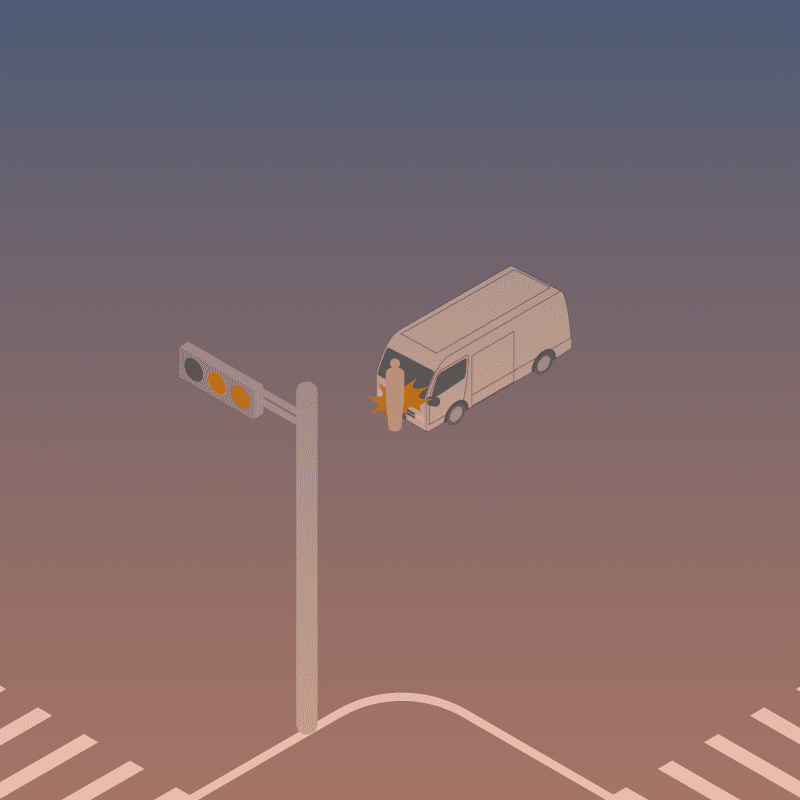 ・イラストに使用している各要素(車、背景、車、天候、信号、衝突地点など)は、代表的なイメージをイラスト化しており、色や形状等含め現実の事故の状況とは異なります。あくまで、事故のイメージとして参考までにご活用ください。
