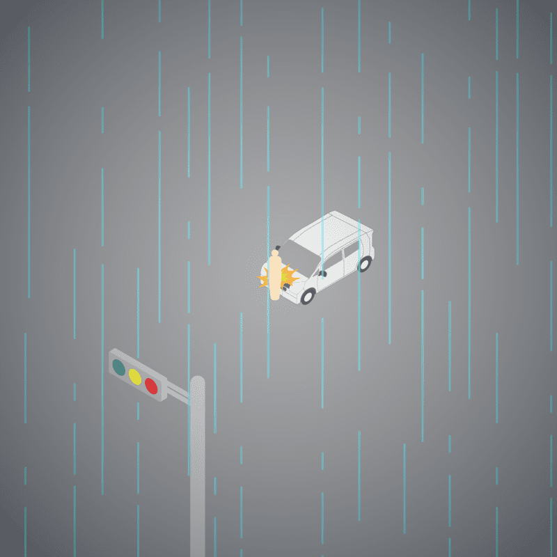 ・イラストに使用している各要素(車、背景、車、天候、信号、衝突地点など)は、代表的なイメージをイラスト化しており、色や形状等含め現実の事故の状況とは異なります。あくまで、事故のイメージとして参考までにご活用ください。