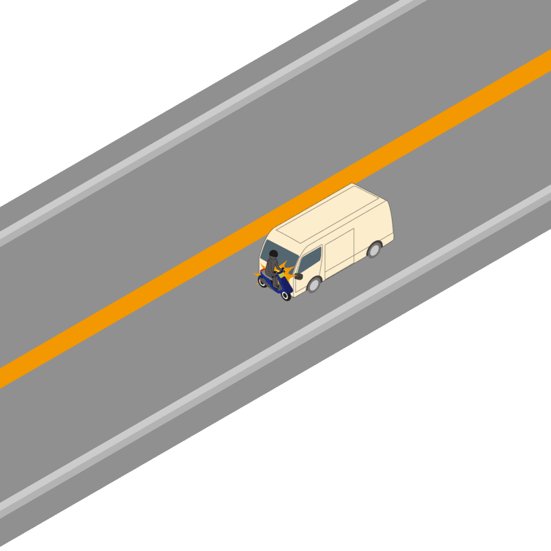 ・イラストに使用している各要素(車、背景、車、天候、信号、衝突地点など)は、代表的なイメージをイラスト化しており、色や形状等含め現実の事故の状況とは異なります。あくまで、事故のイメージとして参考までにご活用ください。