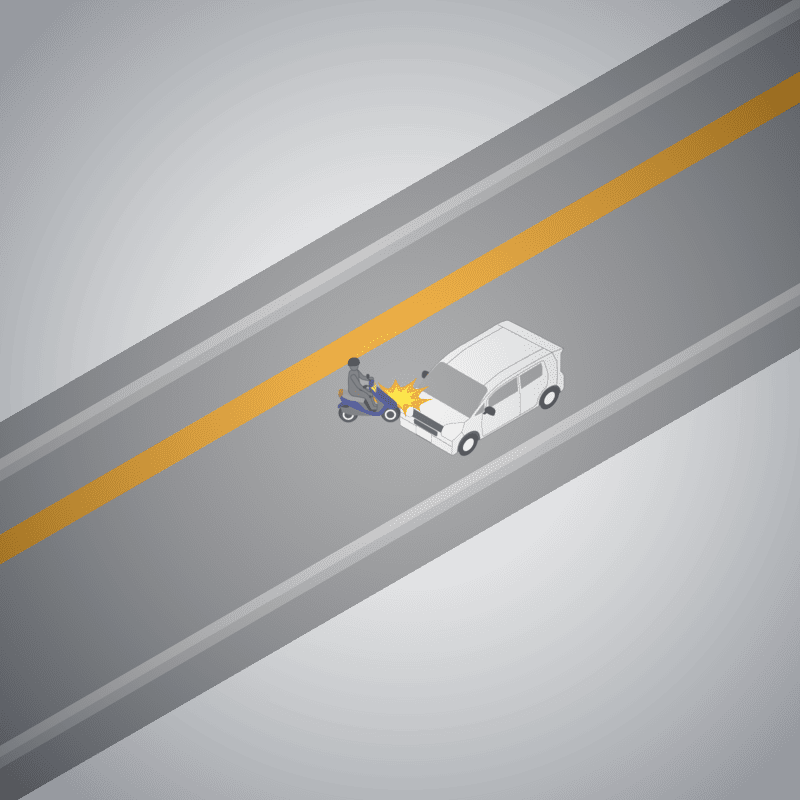 ・イラストに使用している各要素(車、背景、車、天候、信号、衝突地点など)は、代表的なイメージをイラスト化しており、色や形状等含め現実の事故の状況とは異なります。あくまで、事故のイメージとして参考までにご活用ください。