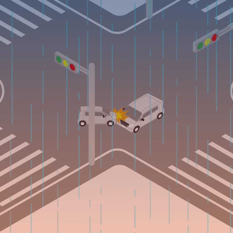 ・イラストに使用している各要素(車、背景、車、天候、信号、衝突地点など)は、代表的なイメージをイラスト化しており、色や形状等含め現実の事故の状況とは異なります。あくまで、事故のイメージとして参考までにご活用ください。