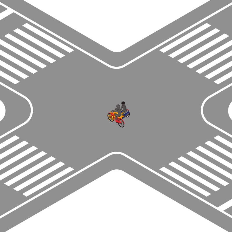 ・イラストに使用している各要素(車、背景、車、天候、信号、衝突地点など)は、代表的なイメージをイラスト化しており、色や形状等含め現実の事故の状況とは異なります。あくまで、事故のイメージとして参考までにご活用ください。