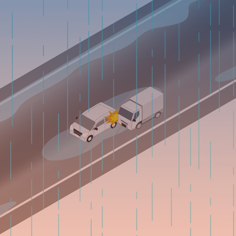 ・イラストに使用している各要素(車、背景、車、天候、信号、衝突地点など)は、代表的なイメージをイラスト化しており、色や形状等含め現実の事故の状況とは異なります。あくまで、事故のイメージとして参考までにご活用ください。