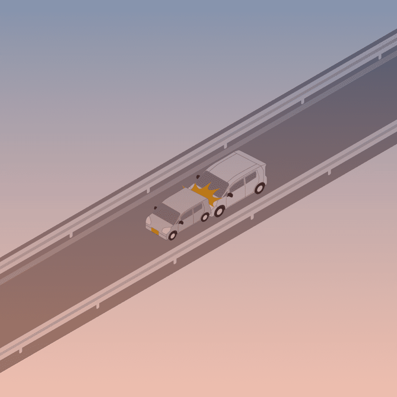 ・イラストに使用している各要素(車、背景、車、天候、信号、衝突地点など)は、代表的なイメージをイラスト化しており、色や形状等含め現実の事故の状況とは異なります。あくまで、事故のイメージとして参考までにご活用ください。