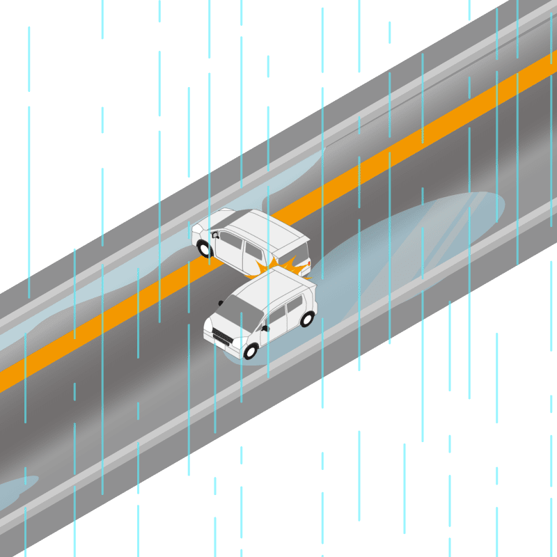 ・イラストに使用している各要素(車、背景、車、天候、信号、衝突地点など)は、代表的なイメージをイラスト化しており、色や形状等含め現実の事故の状況とは異なります。あくまで、事故のイメージとして参考までにご活用ください。