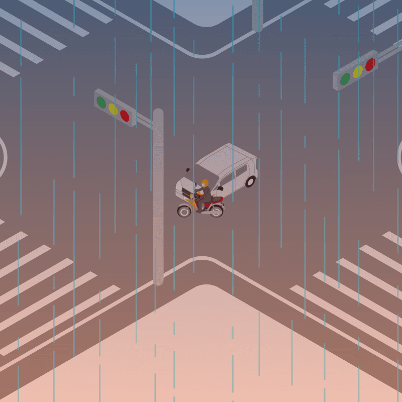 ・イラストに使用している各要素(車、背景、車、天候、信号、衝突地点など)は、代表的なイメージをイラスト化しており、色や形状等含め現実の事故の状況とは異なります。あくまで、事故のイメージとして参考までにご活用ください。