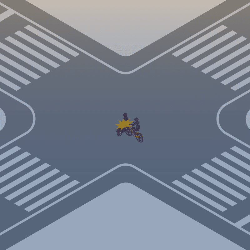 ・イラストに使用している各要素(車、背景、車、天候、信号、衝突地点など)は、代表的なイメージをイラスト化しており、色や形状等含め現実の事故の状況とは異なります。あくまで、事故のイメージとして参考までにご活用ください。