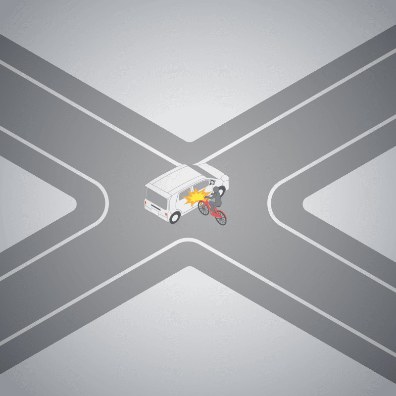 ・イラストに使用している各要素(車、背景、車、天候、信号、衝突地点など)は、代表的なイメージをイラスト化しており、色や形状等含め現実の事故の状況とは異なります。あくまで、事故のイメージとして参考までにご活用ください。