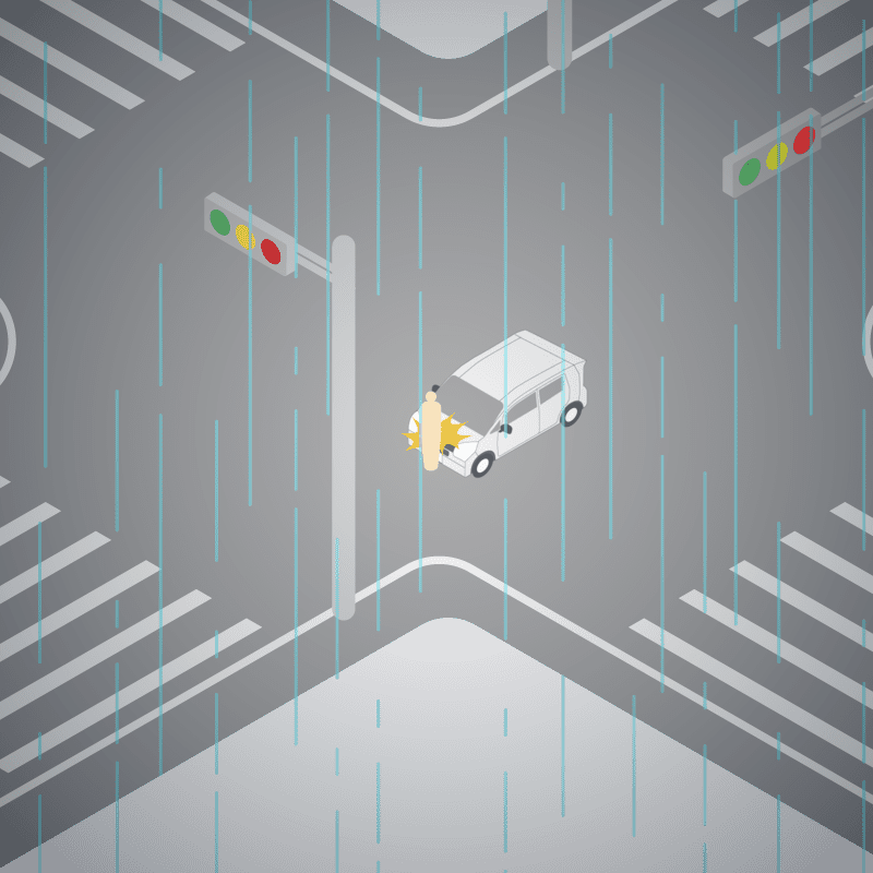 ・イラストに使用している各要素(車、背景、車、天候、信号、衝突地点など)は、代表的なイメージをイラスト化しており、色や形状等含め現実の事故の状況とは異なります。あくまで、事故のイメージとして参考までにご活用ください。