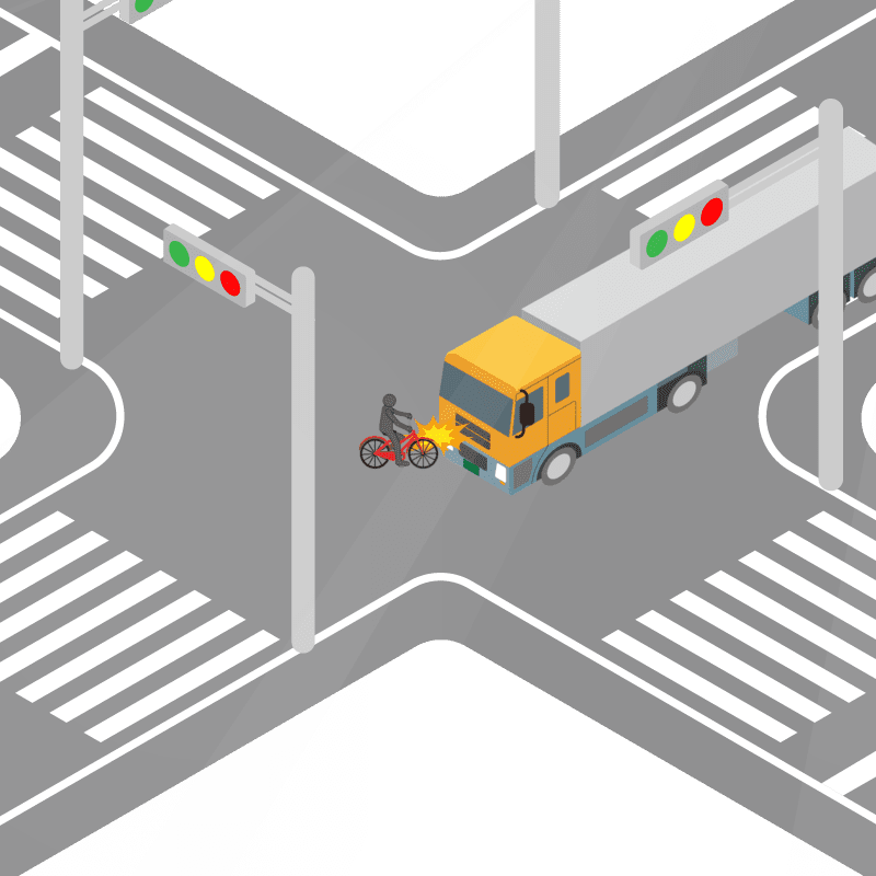 ・イラストに使用している各要素(車、背景、車、天候、信号、衝突地点など)は、代表的なイメージをイラスト化しており、色や形状等含め現実の事故の状況とは異なります。あくまで、事故のイメージとして参考までにご活用ください。