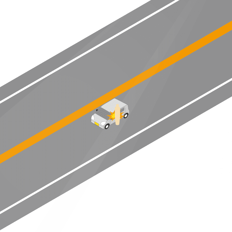 ・イラストに使用している各要素(車、背景、車、天候、信号、衝突地点など)は、代表的なイメージをイラスト化しており、色や形状等含め現実の事故の状況とは異なります。あくまで、事故のイメージとして参考までにご活用ください。