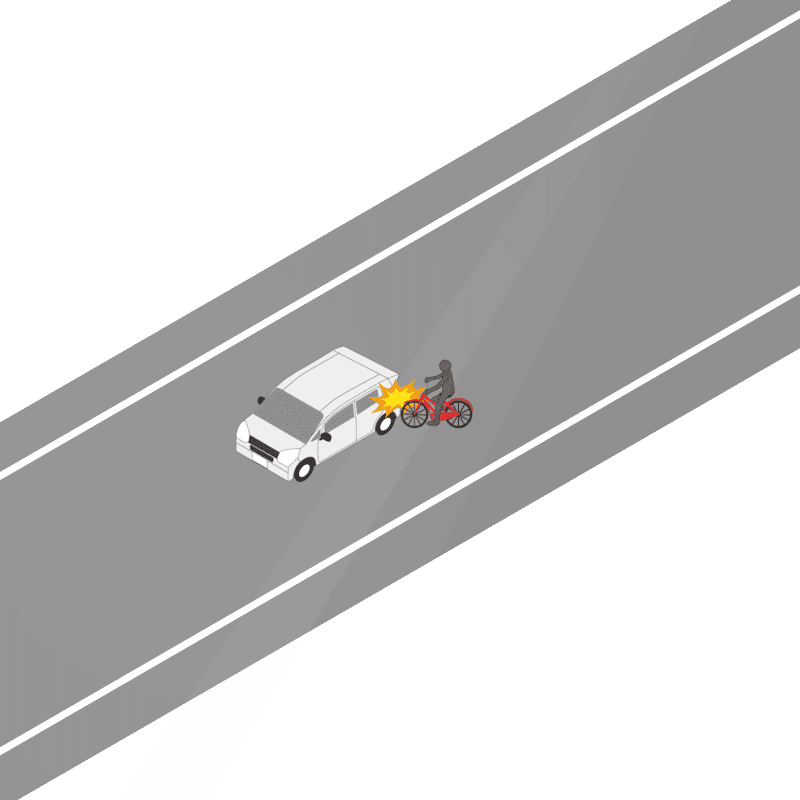 ・イラストに使用している各要素(車、背景、車、天候、信号、衝突地点など)は、代表的なイメージをイラスト化しており、色や形状等含め現実の事故の状況とは異なります。あくまで、事故のイメージとして参考までにご活用ください。