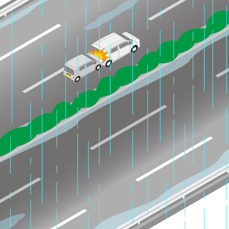 ・イラストに使用している各要素(車、背景、車、天候、信号、衝突地点など)は、代表的なイメージをイラスト化しており、色や形状等含め現実の事故の状況とは異なります。あくまで、事故のイメージとして参考までにご活用ください。